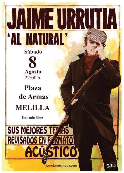 Jaime Urrutia estará actuando, dentro de su gira acústica ‘Al Natural’, en la ciudad autónoma de Melilla, el próximo sábado, 8 de agosto.