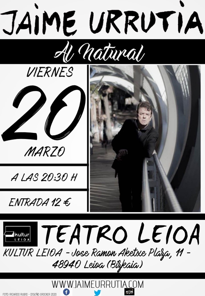 Jaime Urrutia actuará el viernes 20 de marzo, en el marco de su gira acústica ‘Al Natural’, en la localidad vizcaína de Leioa. La cita es en el Teatro de Leioa a las 20.30 horas.